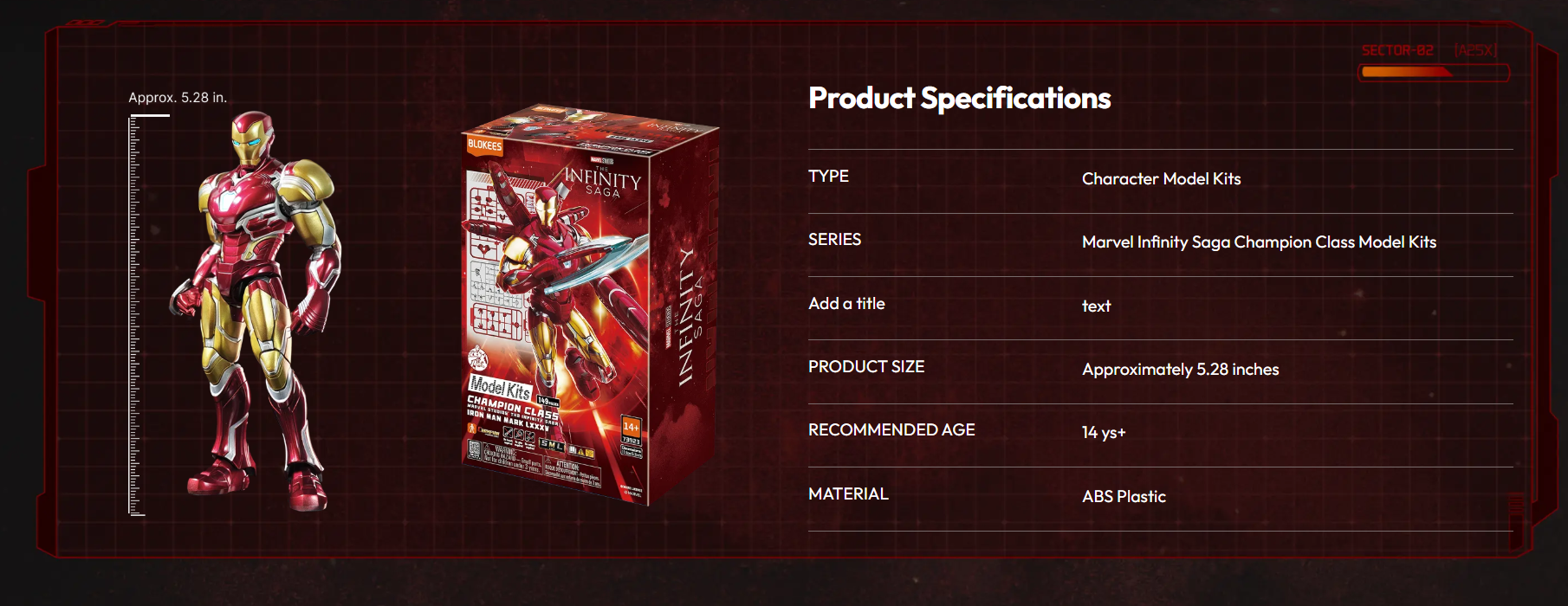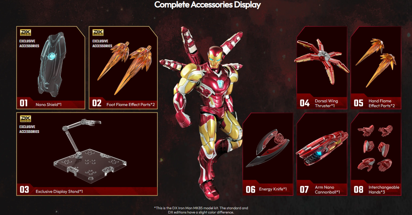 Designed with screen-inspired detailing and articulated joints, this Champion Class edition captures the sleek red-and-gold armor of the Mark LXXXV suit. Once assembled, the figure is fully poseable, making it a striking addition to any Marvel display collection.