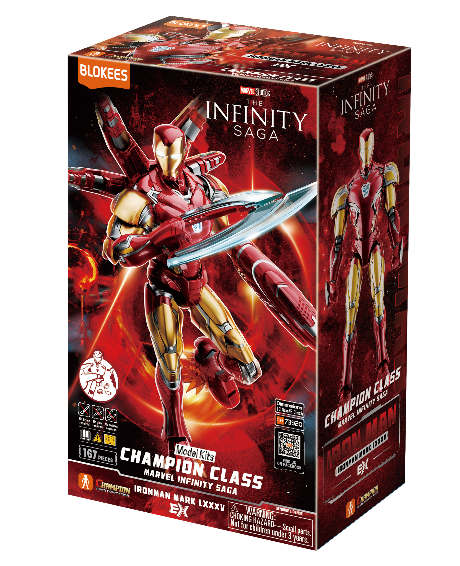 The Blokees Marvel 73920 Champion Class – Infinity Saga Iron Man Mark LXXXV EX is a detailed building action figure inspired by Tony Stark’s iconic final armor from the Marvel Infinity Saga. This model comes as individual building pieces and must be fully assembled before display, offering a rewarding hands-on experience for Marvel fans and collectors.