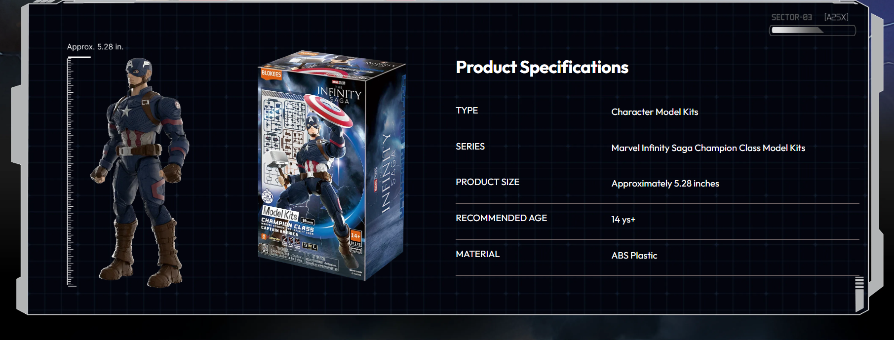 The Blokees Marvel 81115 Champion Class – Infinity Saga Captain America is a detailed building action figure inspired by the legendary Avenger from Marvel’s Infinity Saga. Delivered as individual building pieces, this model must be fully assembled before display, offering an engaging and hands-on building experience.