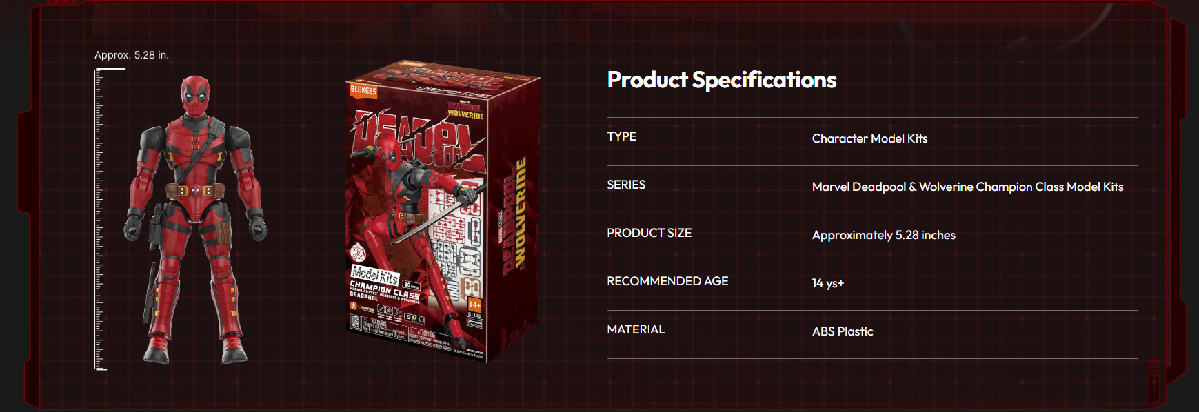 Designed with character-inspired detailing and articulated joints, this Champion Class edition captures Deadpool’s iconic red-and-black suit and dynamic personality. Once assembled, the figure is fully poseable, making it a standout addition to any Marvel collection.