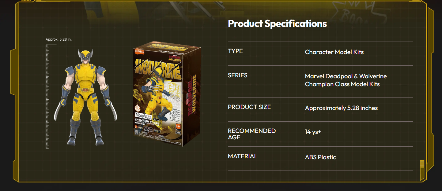 Designed with character-inspired detailing and articulated joints, this Champion Class edition captures Wolverine’s signature suit and fierce stance. Once assembled, the figure is fully poseable, making it a powerful addition to any Marvel display collection.