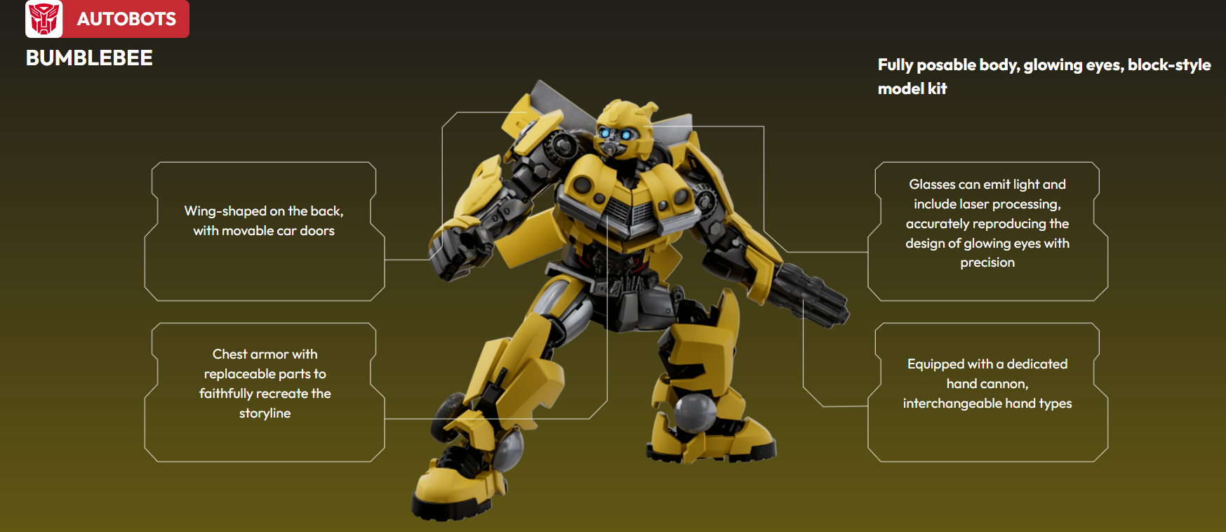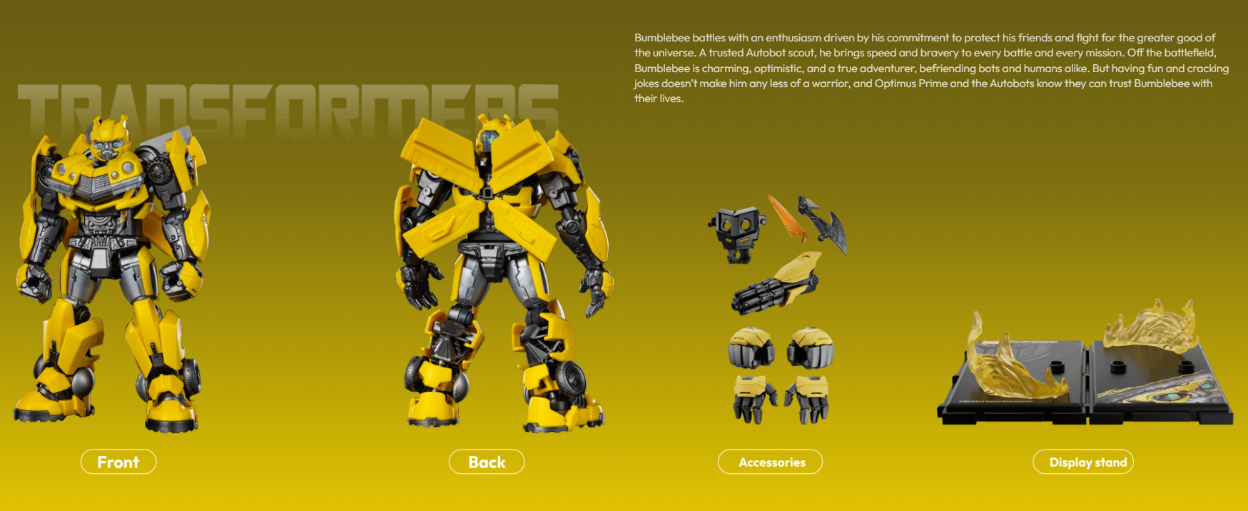| Display Value | Detailed, poseable Bumblebee figure ideal for desks and collections |