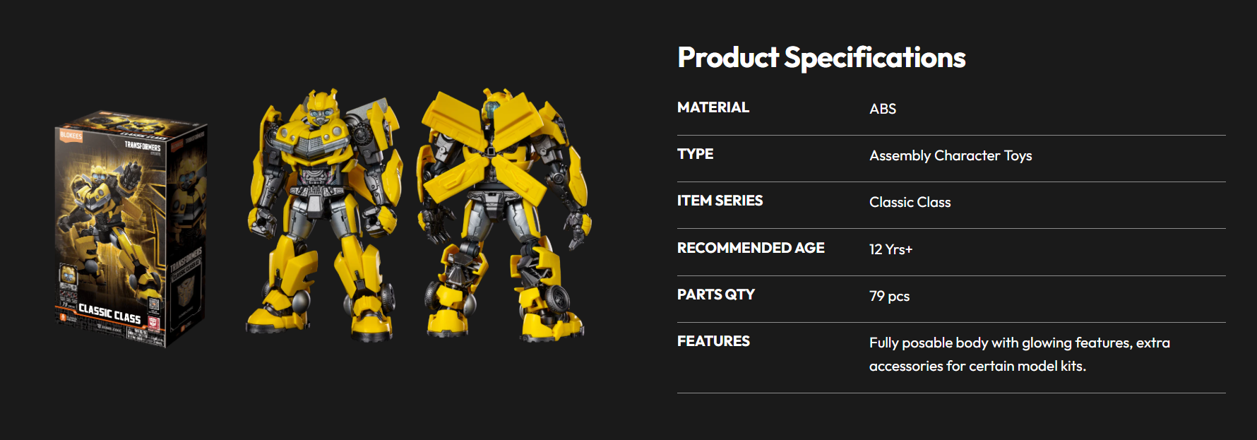 With screen-inspired detailing and articulated joints, this Classic Class edition delivers a dynamic and poseable Bumblebee figure that combines character accuracy with strong display value. Once built, it becomes a compact yet striking addition to any Transformers collection.