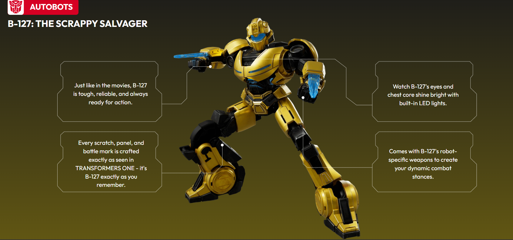 | Display Value | Detailed, poseable B-127 figure ideal for desks and collections |