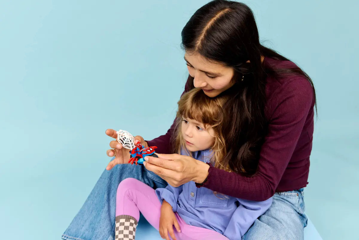 MARVEL ACTION ON WHEELS – Kids help Spidey retrieve a stolen blue gem, dodge flying pizzas launched from Rhino’s pizza oven shooter, and capture Rhino in a giant spiderweb trap