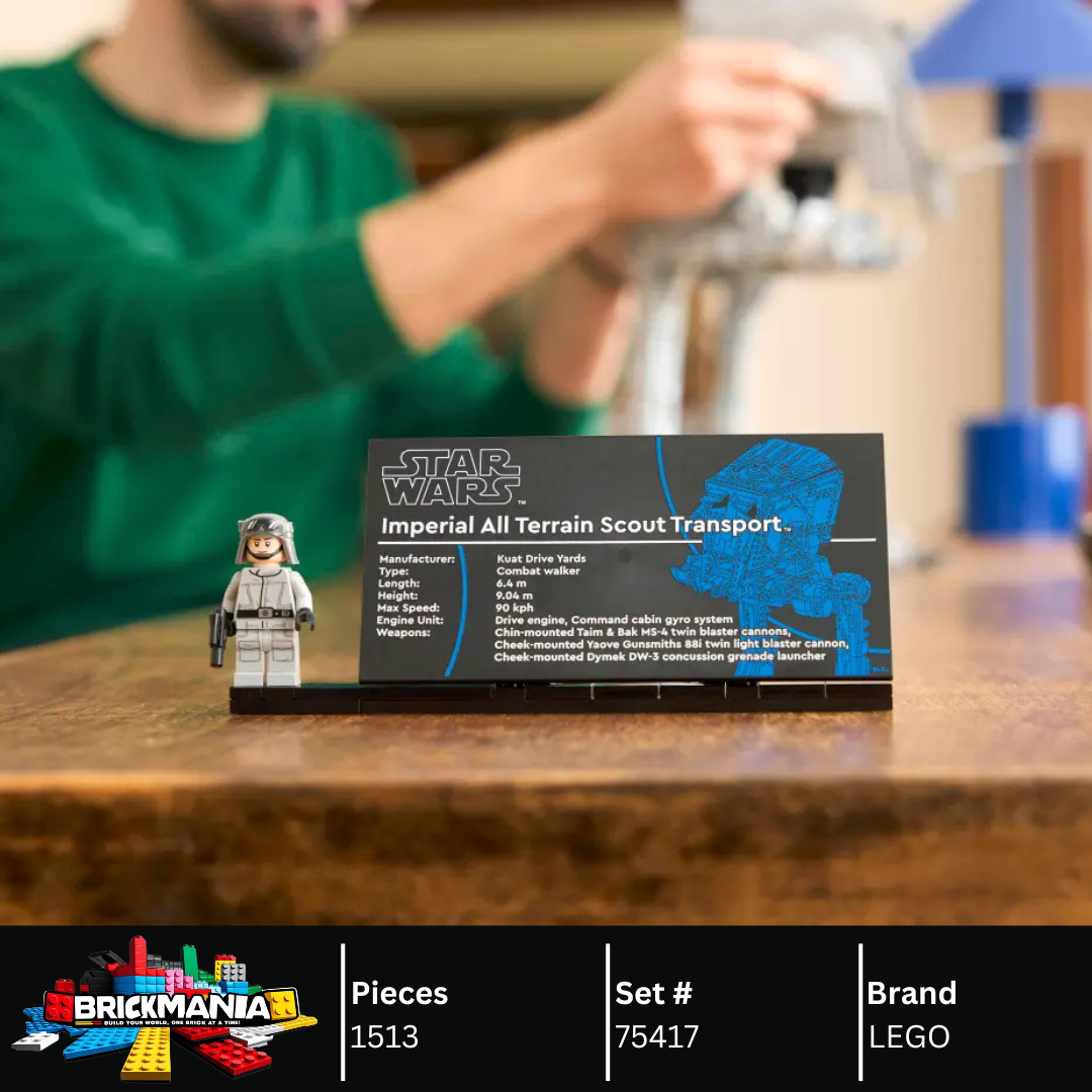This collectible brick-built vehicle comes with an information plaque and a unique LEGO Star Wars minifigure of an AT-ST Driver (with the Imperial crest printed on its arms) to complete a dramatic centerpiece.