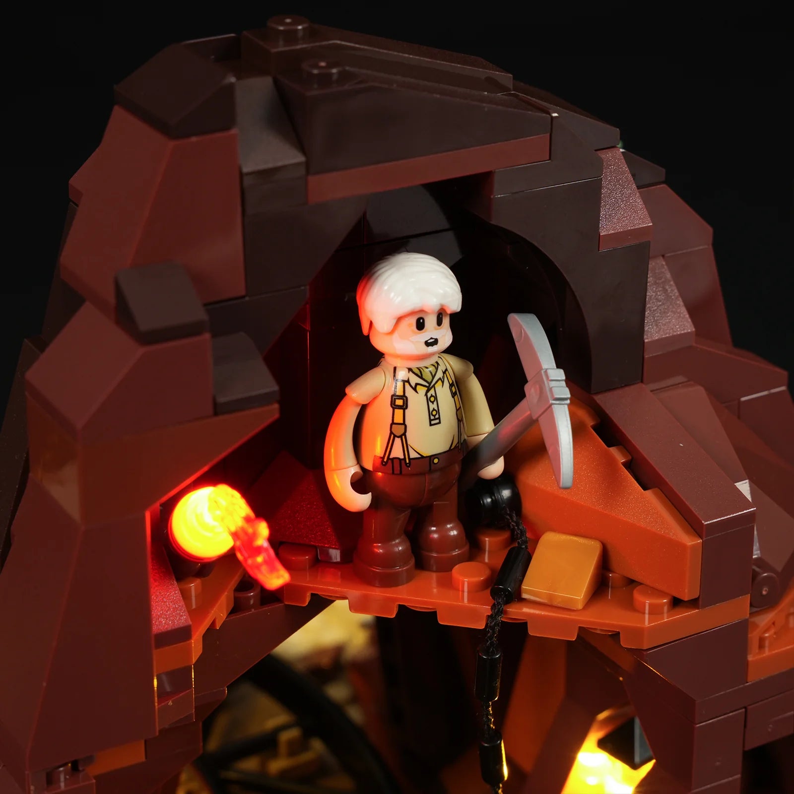 The Lumibricks F9077 Old West Gold Mine Building Toy Set includes 658 detailed pieces that capture the adventurous spirit of frontier mining towns. The model features a rugged mountainside setup with mine tracks, carts, tools, wooden scaffolding, and realistic rock textures — all brought to life with an LED lighting kit that adds depth and atmosphere.