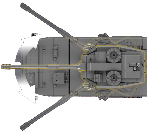 | Design Features | Detailed tracks, rotatable turret, adjustable main cannon (tilt up/down), cockpit with dashboard and seats, realistic tank body design |