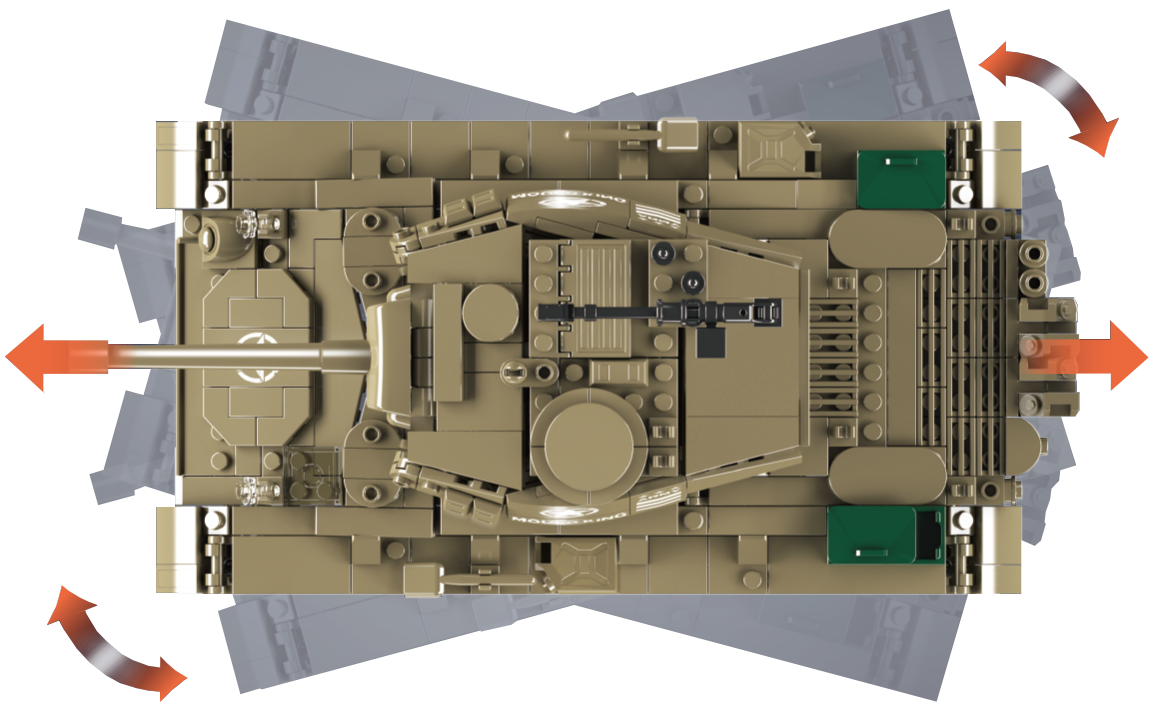 | Design Features | Detailed tracks, turret that rotates 360°, detachable turret with machine gun, realistic armored look |