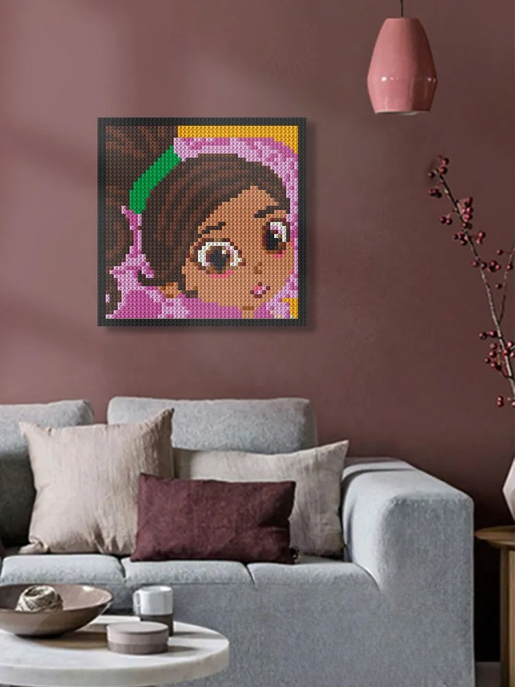 Step into the magical world of Encanto with this Mirabel Mosaic Wall Art. Built from 2304 premium-quality building bricks, this 39x39 cm framed artwork captures Mirabel’s bright personality and colorful style in vibrant pixel art, making it a delightful decoration for Disney fans.