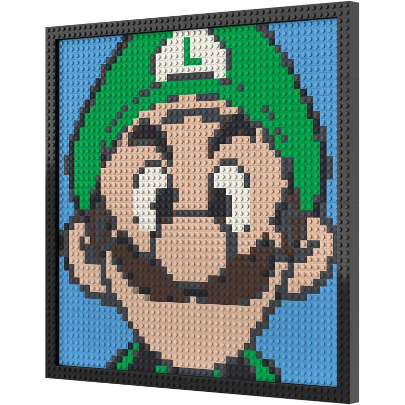 Bring Nintendo nostalgia to life with this Luigi Mosaic Wall Art. Crafted from 2304 premium-quality building bricks, this 39x39 cm framed mosaic captures Luigi’s cheerful expression and iconic green cap in bold pixel-style detail.