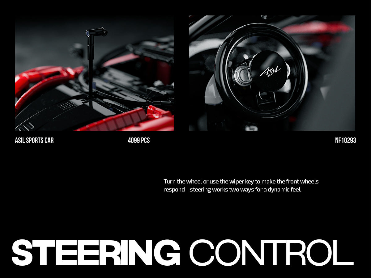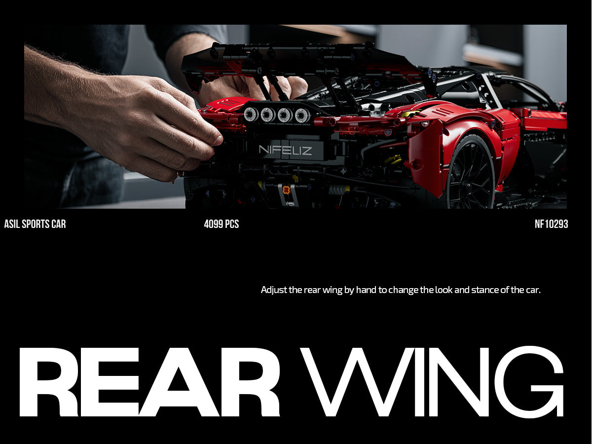 Feel the pulse of high‑performance automotive design with the Nifeliz NF10293 – ASIL Sports Car Building Set, a stunning 4099‑piece model that captures the aggressive silhouette and engineering flair of a modern 1:8‑scale supercar. Featuring glossy crimson bodywork, custom‑molded wheels, and striking butterfly doors, this build blends visual impact with interactive mechanical details like a working 7‑speed gearbox, steering linkage, and pistons that animate as the car is pushed—delivering an immersive and rewarding build experience for serious builders and car enthusiasts alike.
